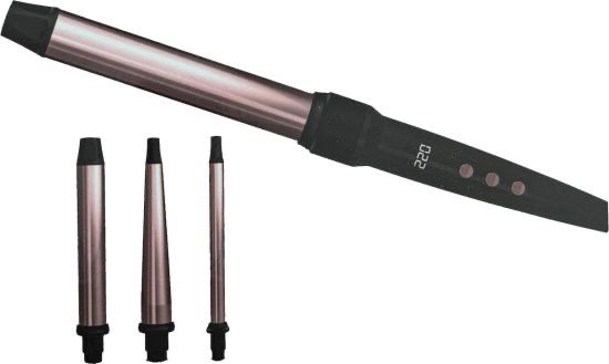 מסלסל שיער מקצועי 4 ב-1 עם ראשים מתחלפים מבית Cortex. מסלסל שיער טיטניום דיגיטלי מקצועי בעל ערכת 4 מסלסלי שיער מקצועיים בגדלים שונים להחלפה